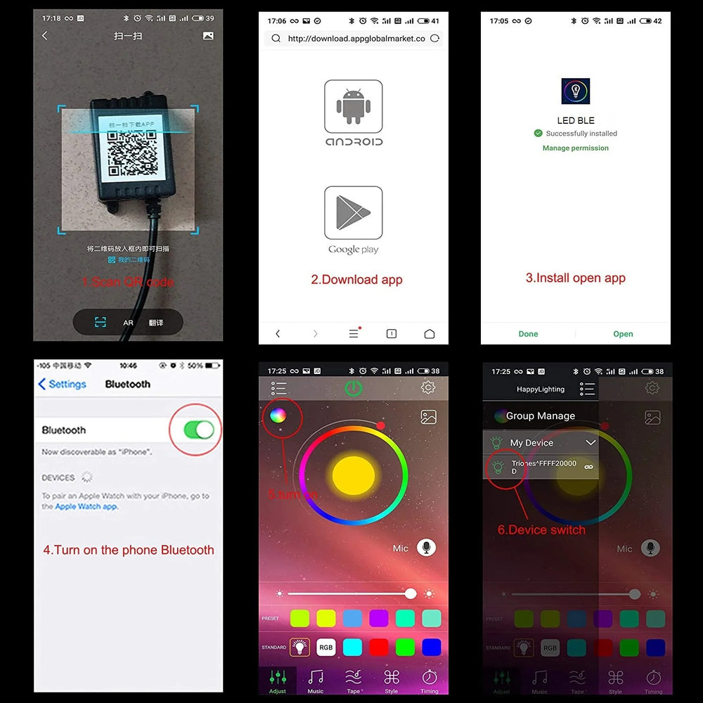 Smartphone Bluetooth Control: Manage colors, brightness, dynamic modes (flash, fade, strobe), and even sync the lights to your music using the dedicated Bluetooth Phone Control app.